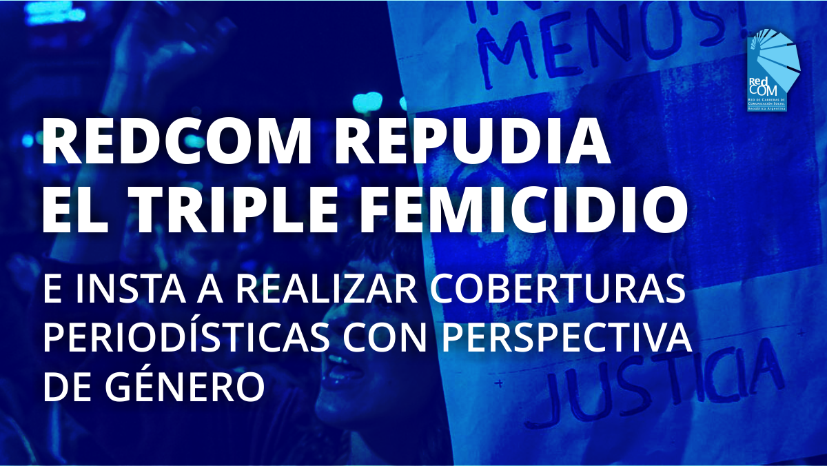 Desde la Red de Carreras de Comunicación Social y Periodismo (REDCOM) expresamos nuestro repudio y dolor ante el triple femicidio de tres jóvenes de La Matanza, provincia de Buenos Aires, cuyo desenlace se conoció el 24 de septiembre. Además, instamos a trabajar en buenas prácticas de cobertura periodística en casos de femicidio y violencias por cuestiones de género.